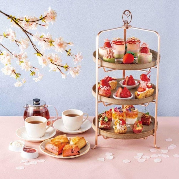 いちばんのポイントは、所沢・北田農園で育てられた、鮮やかな赤色と強い甘みが魅力の「あまりん」と、豊かな香りと濃厚な味わいが特長の「かおりん」が生で味わえること。ほかにも、口どけのよい「こだわり苺のショートケーキ」や「あまおうのムース」などのいちごスイーツに加えて、「桜のモンブラン」や「桜と抹茶のヴェリーヌ」など、春の訪れを感じさせる心躍るスイーツが揃う。最大4時間のカフェフリー付きプランもあるので、ティータイムをゆったり楽しめるのも魅力。