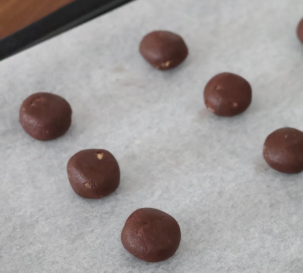 3. 天板にクッキングシートを敷き、2を10〜11等分にし、手で丸める。