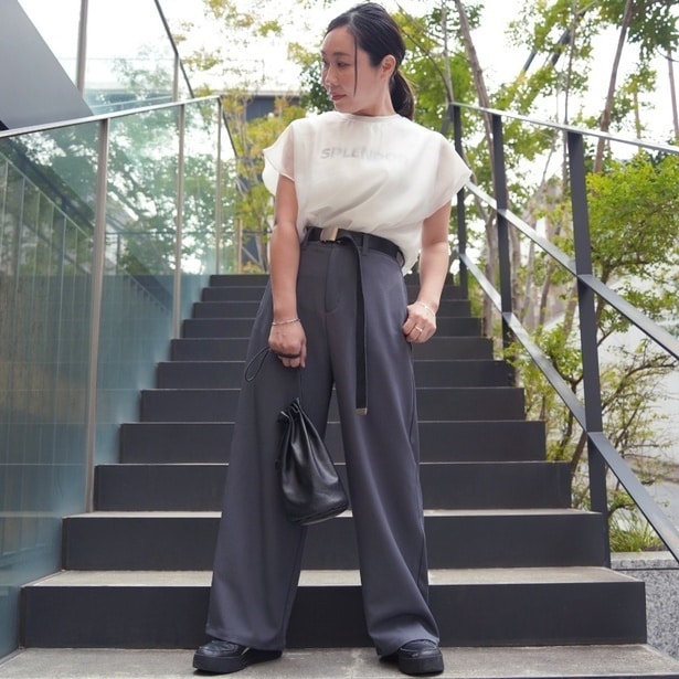 ウエストの細い位置に合わせることで、脚長効果とウエストマークが同時に叶います。