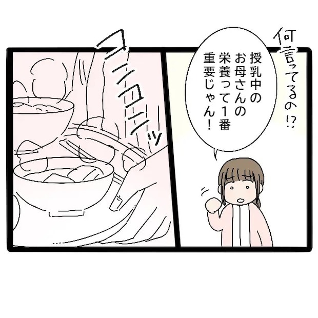 遠慮する母に、私は「何言ってるの!授乳中のお母さんの栄養って1番重要じゃん!」と言い、キッチンを借りて、みずほ先輩の夕食の準備にとりかかります。簡単なものではあるけれど、少しでも栄養がとれるメニューを作りました。出来上がった料理をお盆に乗せ、みずほ先輩のいる2階へと運びます。