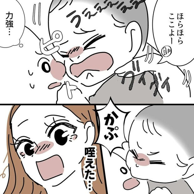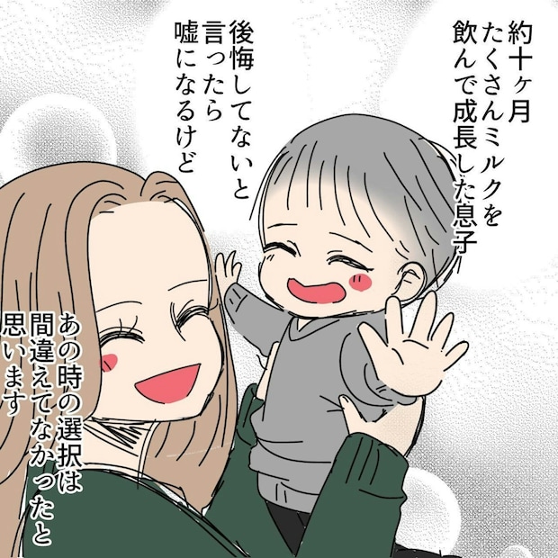 産後の入院中から始まった授乳は、なかなかうまくいかず、焦りや落ち込みを感じる日々だったそうです。退院後に母乳が出るようになったものの、母乳だけのときに赤ちゃんが吐いてしまったことをきっかけに、授乳を見直すことになります。赤ちゃんの吐き戻しは珍しいことではありませんが、当時のタニシさんには、そのでき事を気持ちの余裕をもって受け止めることが難しかったといいます。悩んだ末にミルクへ切り替えたことで、少しずつ前向きに育児と向き合えるようになったそうです。