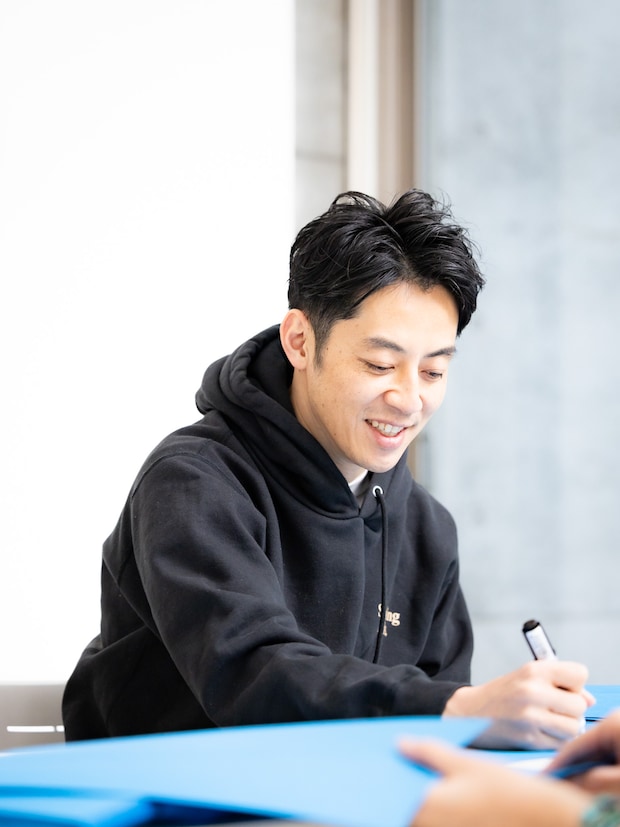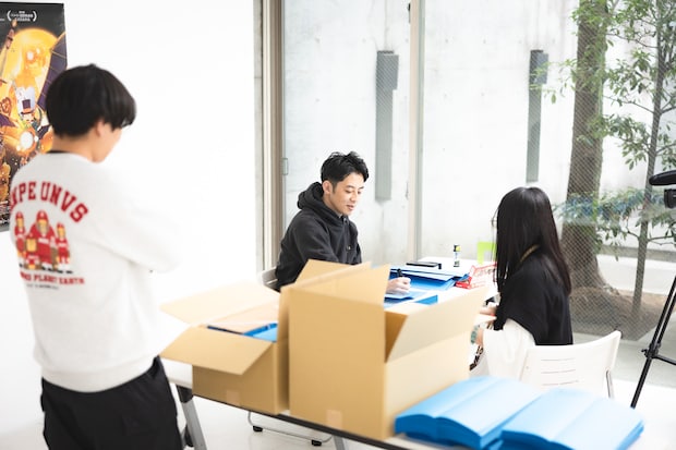 映画の取材会場にも持ち込んで、合間にサイン!