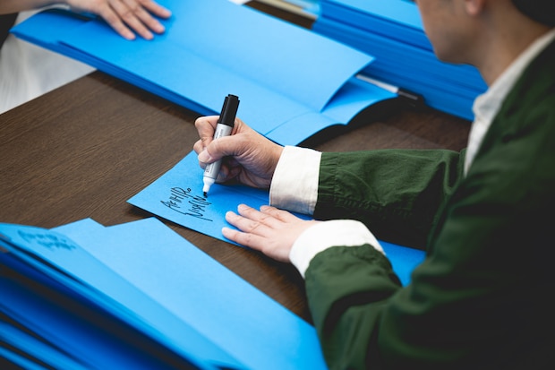 紙の状態でサインして、この紙を使って製本するという、アクロバティック戦法です。