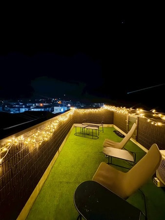 さらに最上階には、別府の街並みを一望できるルーフトップテラスを設置。日中は青空の下でゆったりとした時間を、