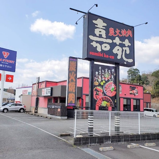 今回は飯塚市柏の森エリア、幹線道路沿いに大きな看板を掲げる焼肉店「炭火焼肉 嘉苑かえん」を訪問。