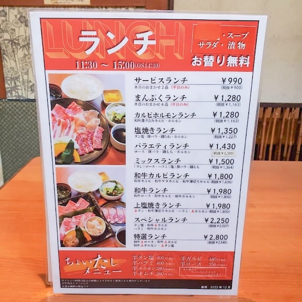 もちろん、心もお腹も大満足するボリューム感ですが、タン塩・ハラミなどを半人前から追加できる「ちょいたしメニュー」も用意されています。