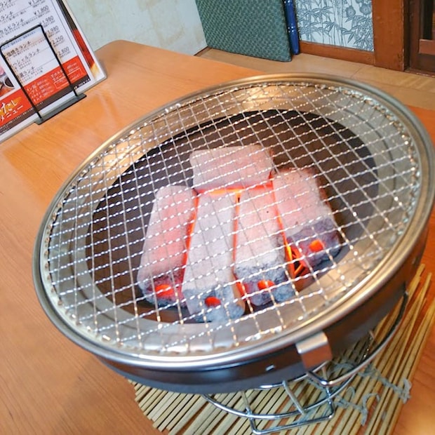 そう、店名からもお察しの通り、よくあるテーブルに組み込まれたガスロースターではなく、あえて移動式の七輪を使用するのが最大の特徴。