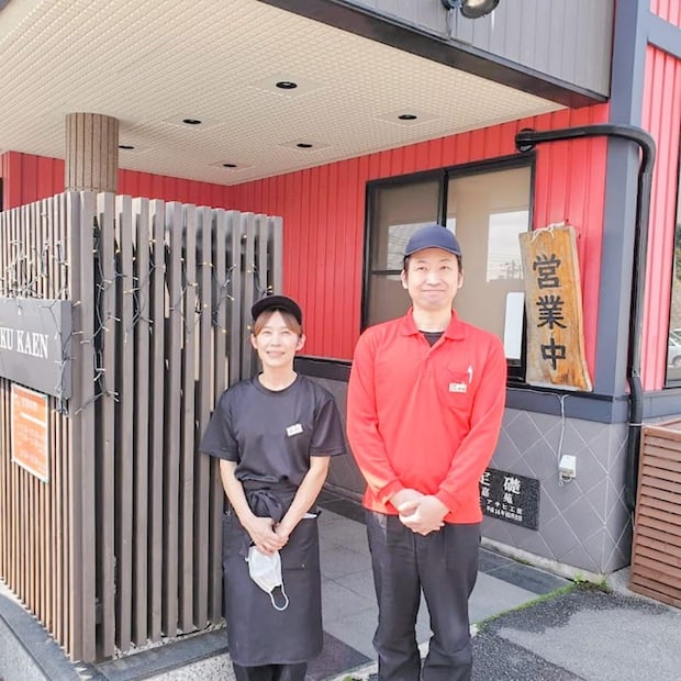 「炭火の管理は本当に大変だけど、お客様の幸せそうな顔を見るのが活力になるんです。」と語る、店長の辻山さんとそれを支えるスタッフの山口さん。