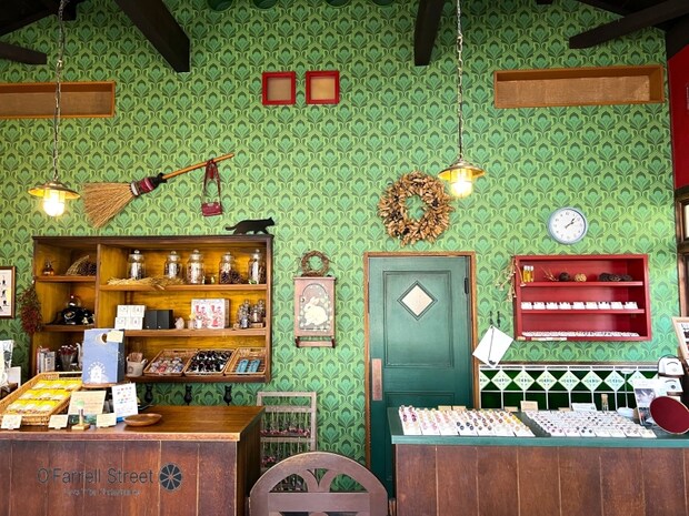 実写版映画『魔女の宅急便』の中で「グーチョキパン屋」のロケで使用したセットが雑貨屋さんとして敷地内に佇んでいます。店内は雑貨や手作りの可愛らしいアクセサリーが並んでいます。映画の世界に入り込んだような、夢のような世界です。