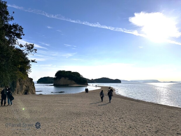 別名・天使の散歩道とも呼ばれるエンジェルロードは恋人たちに大人気のスポット。弁天島、中余島、小余島、大余島の4つの島を総称して余島と呼ばれ、これらの島を結ぶ砂の道が1日2回、海の中から干潮時に現れるのがエンジェルロードです。この道を大切な人と手をつないで渡ると、幸せになれると言われています。弁天島と中余島との往復は20分程度です。