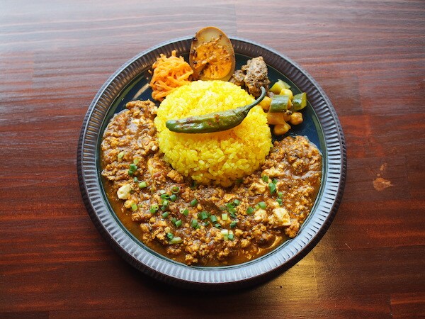 定番のカレーの他、月替わりのカレーもある。限定の麻婆キーマカレーには、インドカレーのスパイスと中華のスパイスを使用