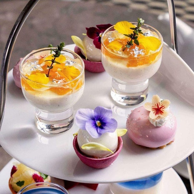 ティースタンドを華やかに彩るのは、これから開花を迎える花々を表現したスイーツたち。クレームブリュレとチェリーのジュレを優しく包み込み、上品な桜の香りがふわりと広がる「桜とルビーチョコレートムース」や、香り豊かなラベンダーのチョコレートクランチに、甘いホワイトチョコレートムースを重ねた「ラベンダーとホワイトチョコレートのタルト」などが並び、目にも鮮やかな春の訪れを感じさせてくれる。