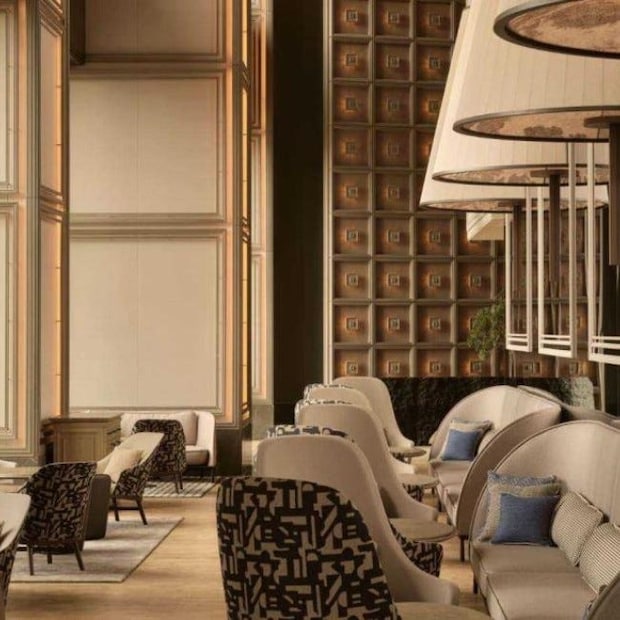 麻布台ヒルズに位置する「アマン」の世界初姉妹ブランドホテル「ジャヌ東京」の「ジャヌ ラウンジ & ガーデンテラス」。東京タワーを望む、高い天井と大きなランプシェードが映えるダイナミックな空間では、四季の食材を使ったアフタヌーンティーが楽しめる。特別なティー&コーヒーセレクションとともに優雅な時間を。