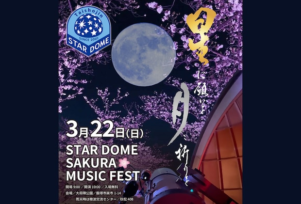 3月22日(日)、大将陣公園の大将陣スタードームで「STAR DOME SAKURA MUSIC FEST.」が開催されます!