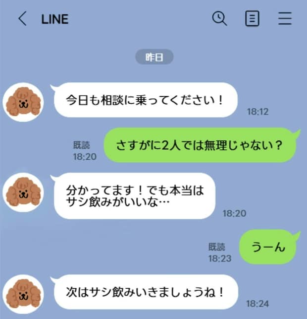 本当に仕事の相談なのだとしたら、これまでの長電話と毎日のLINEはなんだったの??それで解決できないわけ??お酒の席で相談する必要ないでしょって思います。