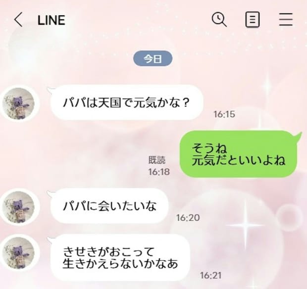 投稿者さんの子どもは「パパとLINEをつなぎたい」と言っているようですが、当然、今のままでパパから返事が来ることはありませんよね…。子どものメッセージにパパとして返信をしてもよいものか、それとも「パパはもういない」という現実をありのままにしておくべきか、投稿者さんは葛藤しています。