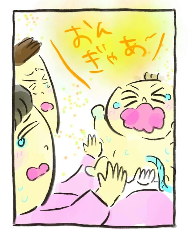 やっと我が子に会うことができたおたんこ助産師さん、このときお世話になった現代医療に感謝の気持ちでいっぱいでした。