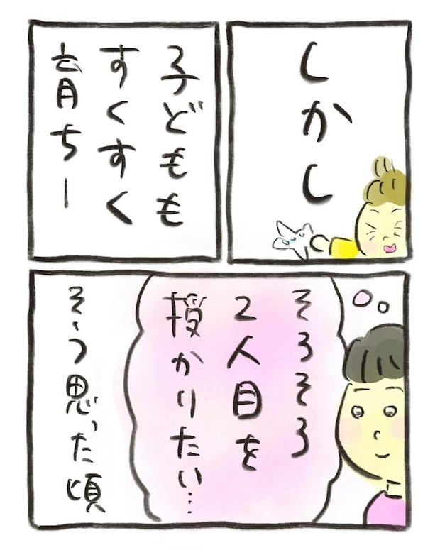 体調を整えるため仕事をセーブし薬を飲み続けていたおたんこ助産師さん。ついに第一子を妊娠します。妊娠中はつわりなどがあったものの無事に出産しました。ほどなくして第二子を授かりたいと思いはじめます。