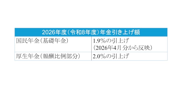2026年1月23日の厚生労働省の発表により、2026年度(令和8年度)は、物価や賃金の変動を反映し、年金額が前年度から引き上げられることが決定しました。