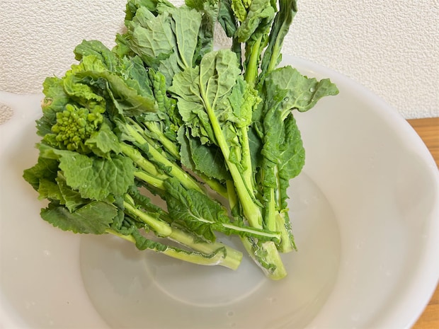 こうしておくことで、菜の花がシャキッと元気になるそうです。