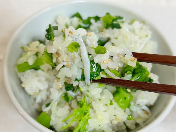 ご飯おかわり!菜の花と釜揚げしらすの混ぜご飯