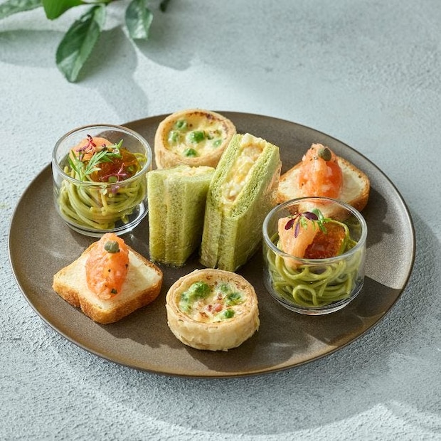 新緑の初夏を思わせる涼やかなグリーンのアフタヌーンティーを、ぜひ春のおでかけに選んでみて。