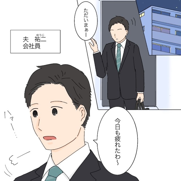 夜、いつものように子ども達が寝てから夫が仕事から帰って来ました。「今日も疲れたわ~」と溜息をつきながらリビングに入ってきます。