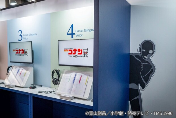 そして、アニメ制作に欠かせない「アフレコ」エリアでは台本を見ながら声優・高山みなみさん演じる江戸川コナンの「喜怒哀楽」の違いを聴き比べられます。台本上部に記載されたシーンの説明を見ると楽しさがさらに増しました!