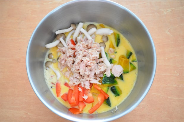 かぼちゃの甘味としめじとツナの旨味、最後にパプリカの風味もじんわり感じます。