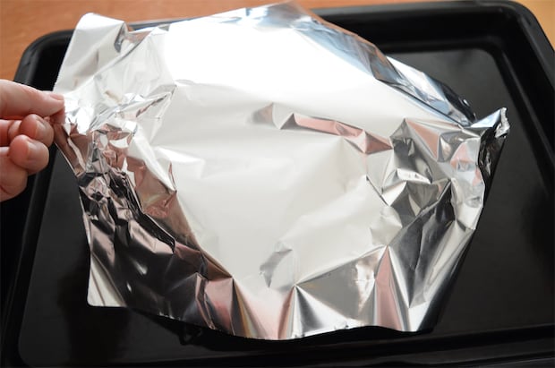 5. 200℃で予熱しておいたオーブンで15分焼き、アルミホイルで表面を覆ってさらに15分焼く。