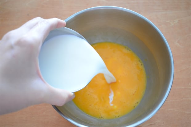 4. 型にクッキングシートを敷き、3を流し入れる。