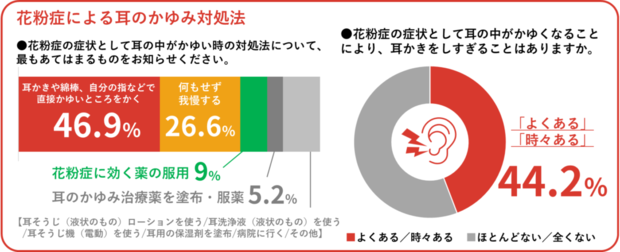 “花粉耳”の対処法「直接かく」が約半数…かきすぎは悪化の恐れも