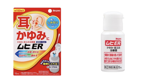 耳のかゆみが気になる場合には、耳専用の治療薬を使用することで、炎症を抑え、かゆみを和らげるといった効果が期待できます。池田模範堂では、耳のかゆみをかいて紛らわせるのではなく、「医薬品で治療する」という新習慣を提案しています。耳などのかゆみ・皮膚炎治療薬「ムヒER」は、抗炎症成分PVA(プレドニゾロン吉草酸エステル酢酸エステル)が炎症をしっかり抑え、ℓ-メントールの清涼感がかゆみをすばやく和らげます。使用する際は、清潔な綿棒に薬液を含ませて、耳の入り口付近にやさしく塗布します。耳の奥まで綿棒を入れないことが大切です。