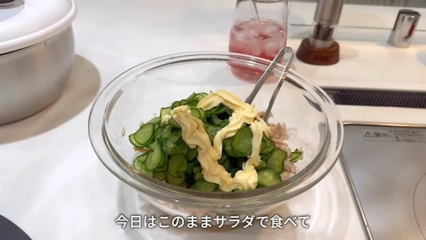スライスしたきゅうり3本分を塩もみし水気を切ったあと、ツナ缶2缶・酢・塩・ブラックペッパー・マヨネーズを加えて和えれば、あっという間に絶品サラダの完成。サンドイッチの具材にリメイクもできますよ。