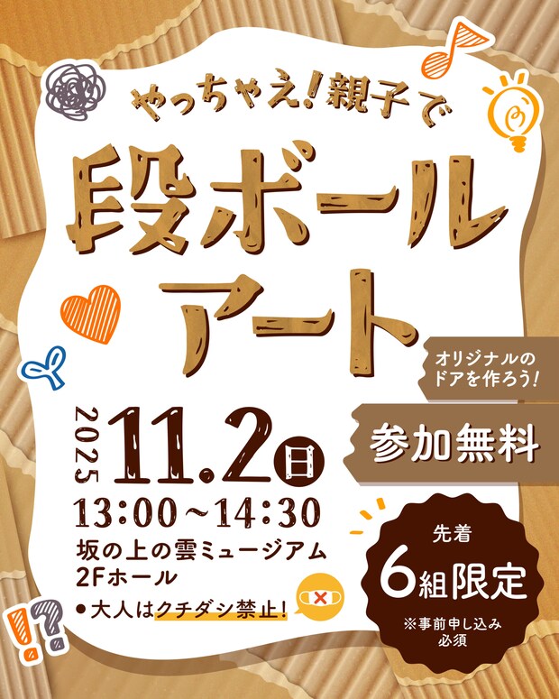 松山市在住の親子を対象に、自由な発想で楽しめる体験型アートイベントが開催されます。