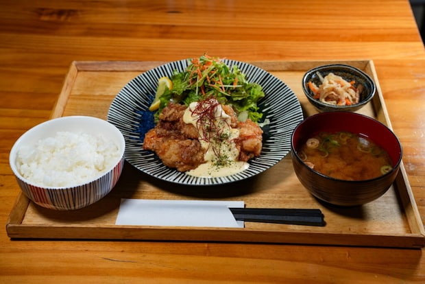 大きな鶏とたっぷりの野菜がお皿に盛られたご飯がどんどん進む定食!