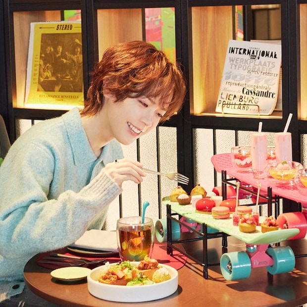 スケボー型のスタンドに盛り付けられたセットが運ばれてくると、思わず目を丸くして「すごい!」とひと言。