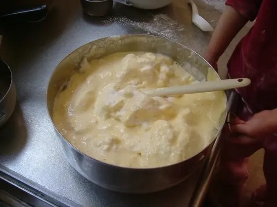4.3に1のメレンゲを2~3回に分けて加え、さっくりと混ぜる。