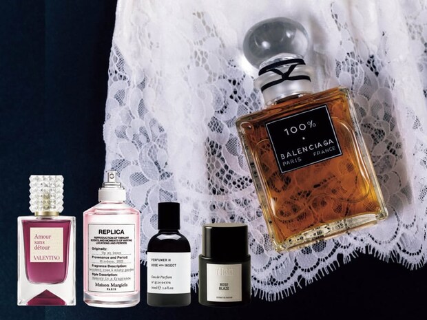 堀江ちひろ(以下H)うんうん。そういうときはレザーやウッドがスパイスになっているものとか、可愛過ぎないフローラルがジャストだと思う。ちなみに今、“素敵フローラル”といえば、完全にバラが独走してる状態。特に昨秋デビューしたバレンシアガの100%(↓)なんかはモダンにしてエレガントで、まさにイット ローズだと思うわ。