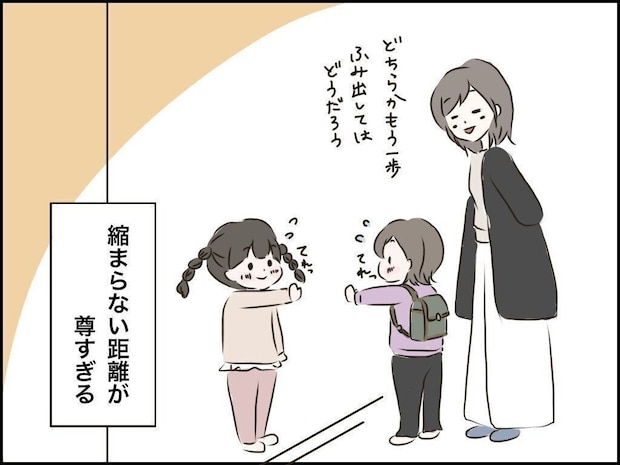 一定の距離を保ちお互いタッチ待ち状態の2人。