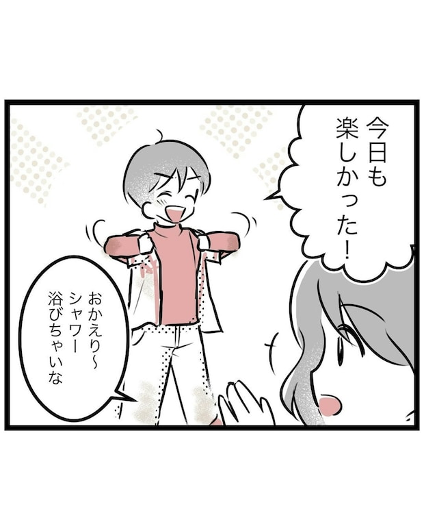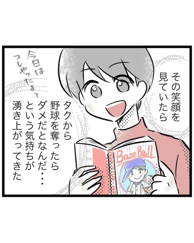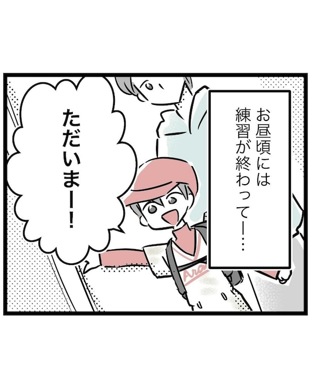 野球から帰ってくる息子は、いつもと変わらず元気いっぱい。夫の計らいのおかげで、もっつんさんは大好きな野球を息子から取り上げずにすみました。