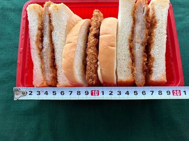 パンの厚みは約2cmでしたので、それと同等レベルかそれ以上の厚みのトンカツが入っています。