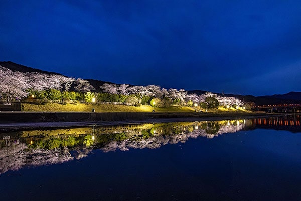 夜桜ライトアップの実施日時は、3月28日(土)~4月5日(日)日没〜21:00頃。会場は五十鈴川河川敷 野あそび棚周辺だ。
