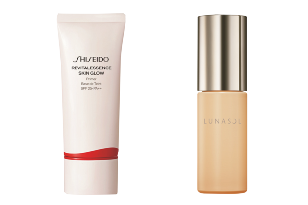 ヌケ感というテーマにおいてベースが大事なのは言わずもがな。今の気分はナチュラルなツヤ感がありつつ、程よくカバーされた肌。この2つが最強。左から:美容液処方の下地。エッセンス スキングロウ プライマー SPF25・PA++ 30g ¥5,280(SHISEIDO)、水分を感じさせるみずみずしいツヤ肌に。ルナソル クラリティフロウ リクイド SPF30・PA++ 30mL 全6色 ¥6,930(カネボウ化粧品)