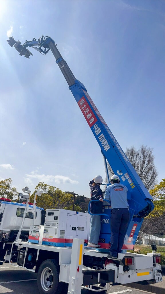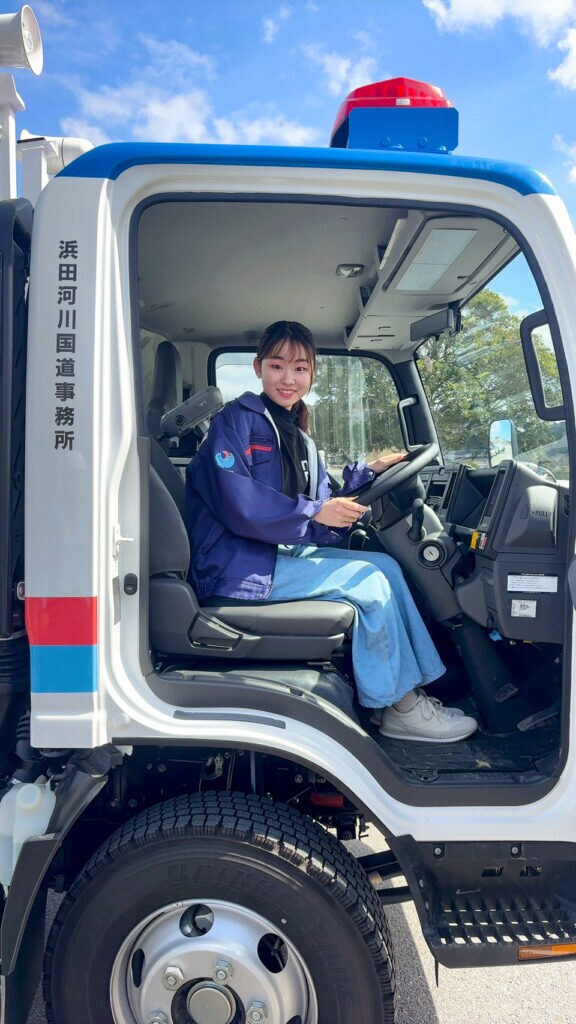 ちゃっかり国土交通省の職員さんのユニフォームを着て、照明車という大きな車両の操作を体験させていただきました^ ^
