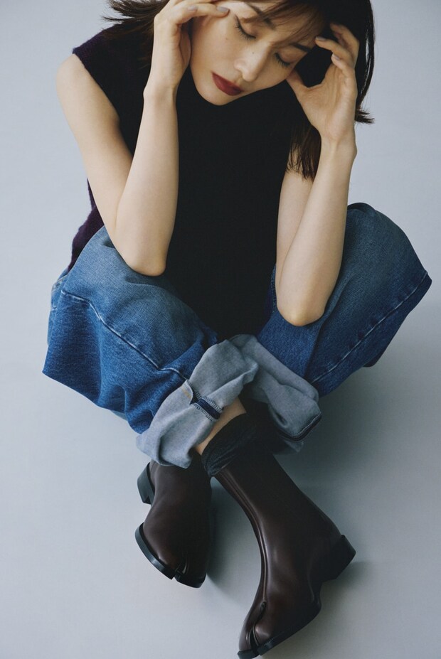 ブーツ¥147,400、ニット¥124,300、デニム¥94,600、ソックス¥16,500 (全てメゾン マルジェラ/マルジェラ ジャパン クライアントサービス)