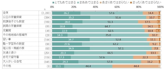 一方で、行きたい場、好きな場、ほっとできる場で過ごしている子どもほど、自己肯定感・チャレンジ意欲・将来希望が高いことがわかりました。