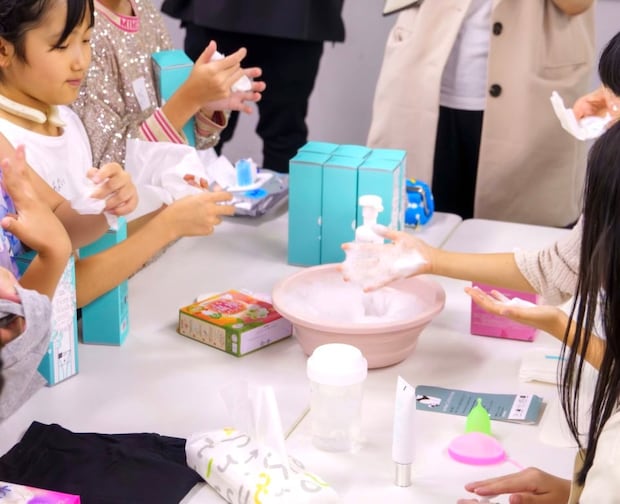 デリケートゾーン専用のソープを実際に触りながら洗い方を、ナプキンの正しい使い方をショーツを使いながらレクチャー。