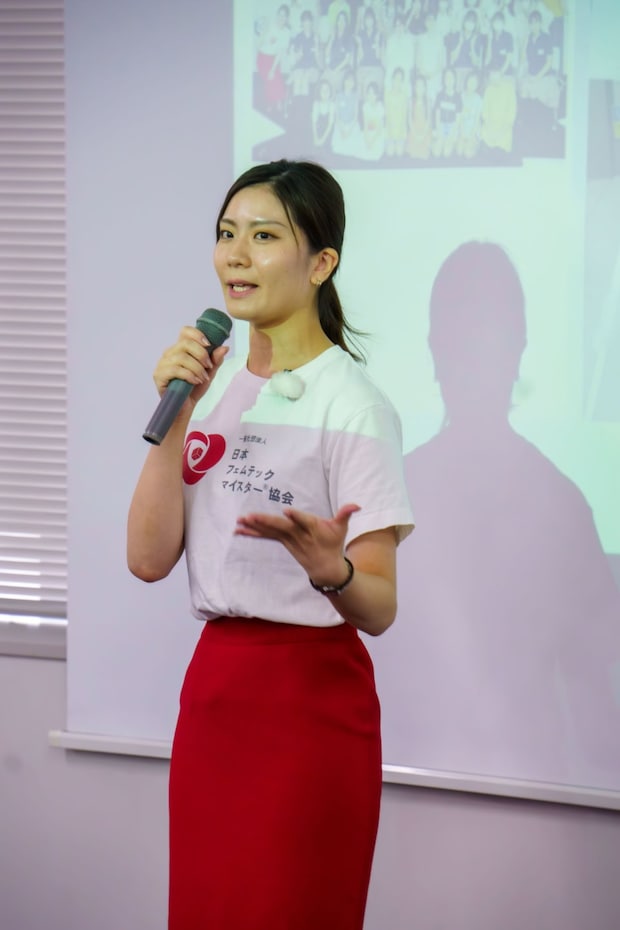 講師1人目は日本フェムテックマイスター®協会理事の小平真実さん。ティーンにわかりやすく、膣とは何か? 生理の役割やデリケートゾーンの洗い方などフェムケアに対する正しい情報をレクチャー。