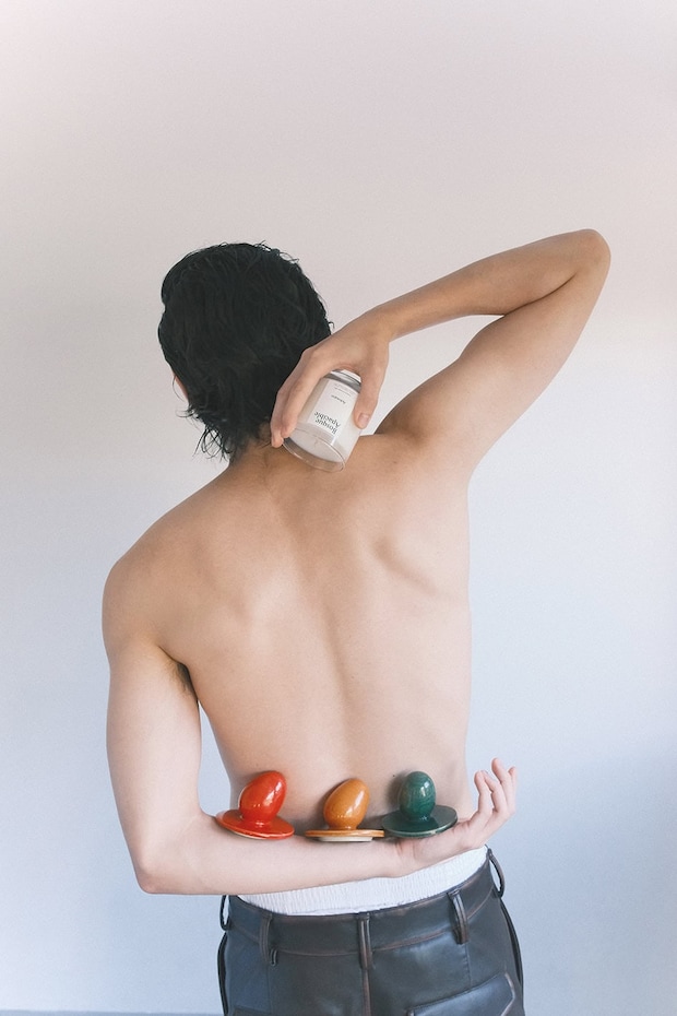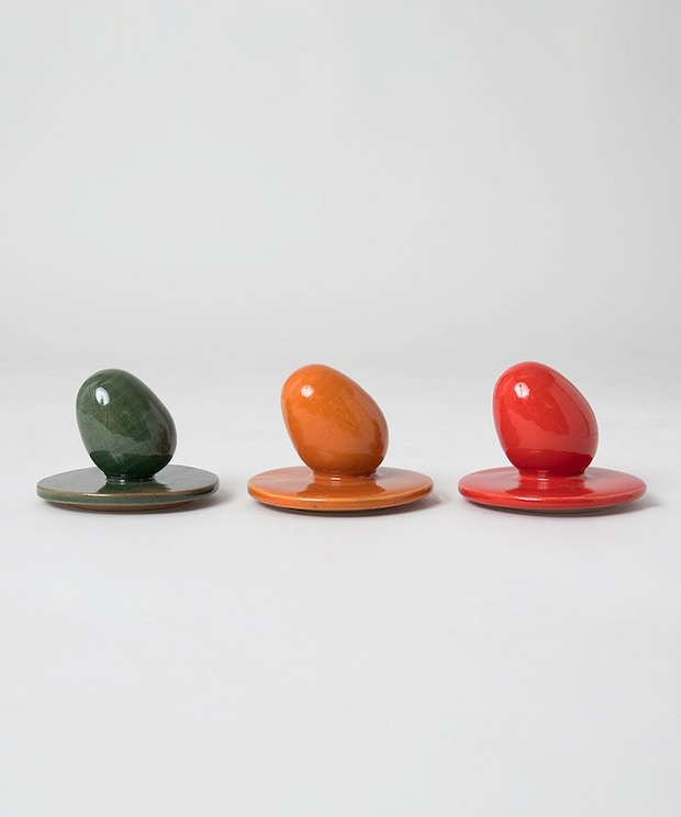 そしてキャンドル一緒に発売される、ブランドのアイデンティティともいえる“Esfera"(エスフェラ)は、陶磁器のオブジェ。一見すると装飾的なキャンドルのフタのように見えますが、使い方はその人の自由。ブランドのファウンダーが、職人とディスカッションを重ね、多様な薬液や加工技術によって、ひとつひとつ丁寧に手作業で作られています。卵のような、なんとも言えない球体は、質感や表情がそれぞれ違ってとても個性的。使う人が自由に解釈をして、日常生活に新たな物語を加えてほしい、そんなブランドのフィロソフフィーを体現しているようなアイテムです。